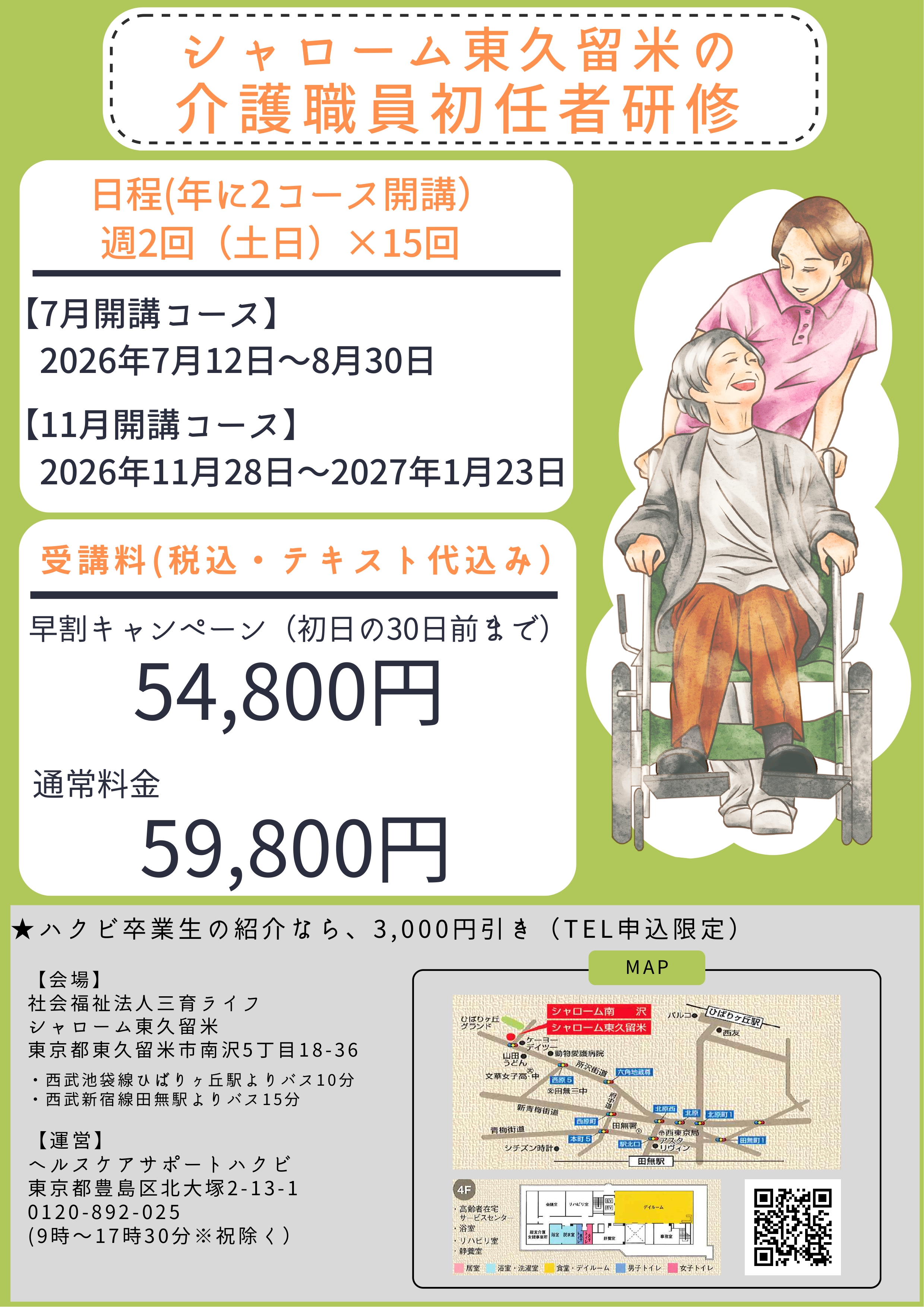 (東京都東久留米市 ) 高齢者施設内で初任者研修が学べます。資格が取得できます。
